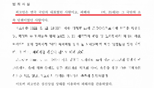 연극 극단 대표 A씨는 공연을 무사히 마친 기념으로 극단 사람들과 함께 회식을 하며 술을 마시고는 술에 만취하여 몸을 제대로 가누지 못하는 극단 소속 단원 B씨를 집으로 데리고 가 성관계를 하였습니다.