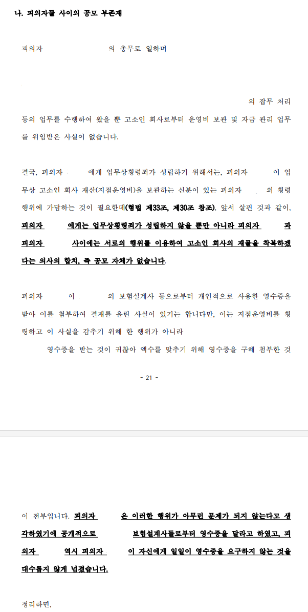 제가 쓴 변호인의견서 내용 중