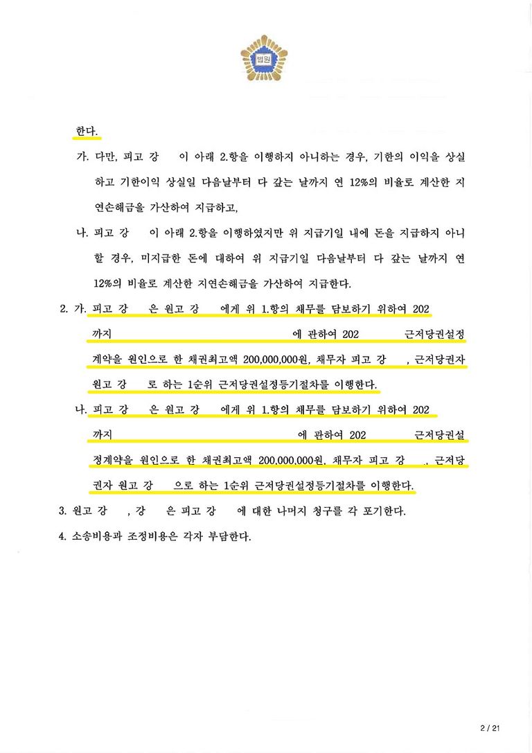 아들은 지금 당장 돈이 없으니 1년만 기한을 달라고 하였고, 저희는 기한유예를 주는 대신 채무를 담보하기 위하여 아들 소유 부동산에 근저당권설정등기를 해줄것까지 요구하여 의뢰인들이 원하는 액수를 받아온 것은 물론 담보장치까지 마련하며 안전하게 마무리한 사안입니다.