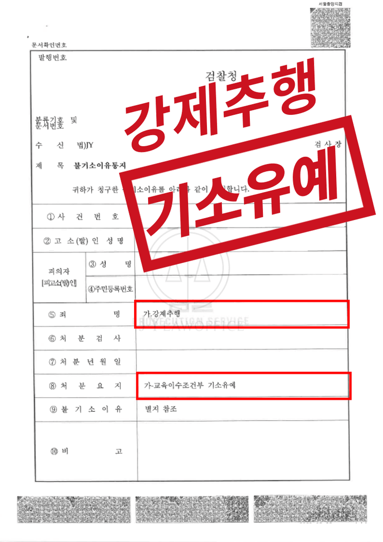 이와 같은 변호인의 노력에 따라, 의뢰인은 재판 없이 검찰 단계에서 기소유예의 불기소처분을 받을 수 있었습니다.