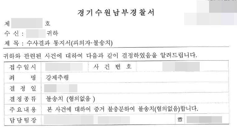 의뢰인은 증거 불충분으로 무혐의 처분되었습니다.