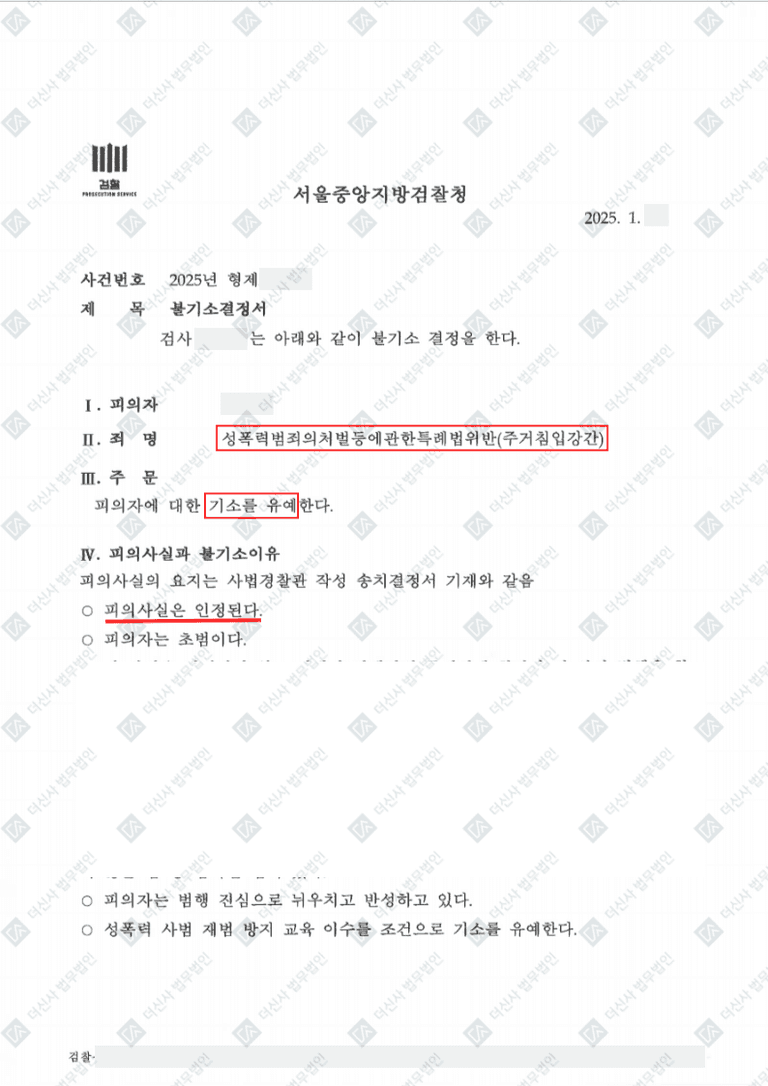 최근 진행한 주거침입강간 사건을 통해 참고하셔서