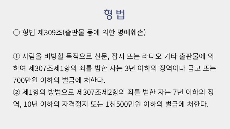 일반적인 명예훼손 행위와 달리, 출판물 또는 정보통신망을 이용하여 명예훼손 행위를 하는 경우는 그 전파력이 일반적인 행위에 비해 월등함을 감안하여, 일반 명예훼손죄보다 가중하여 처벌하는 규정을 두고 있습니다.