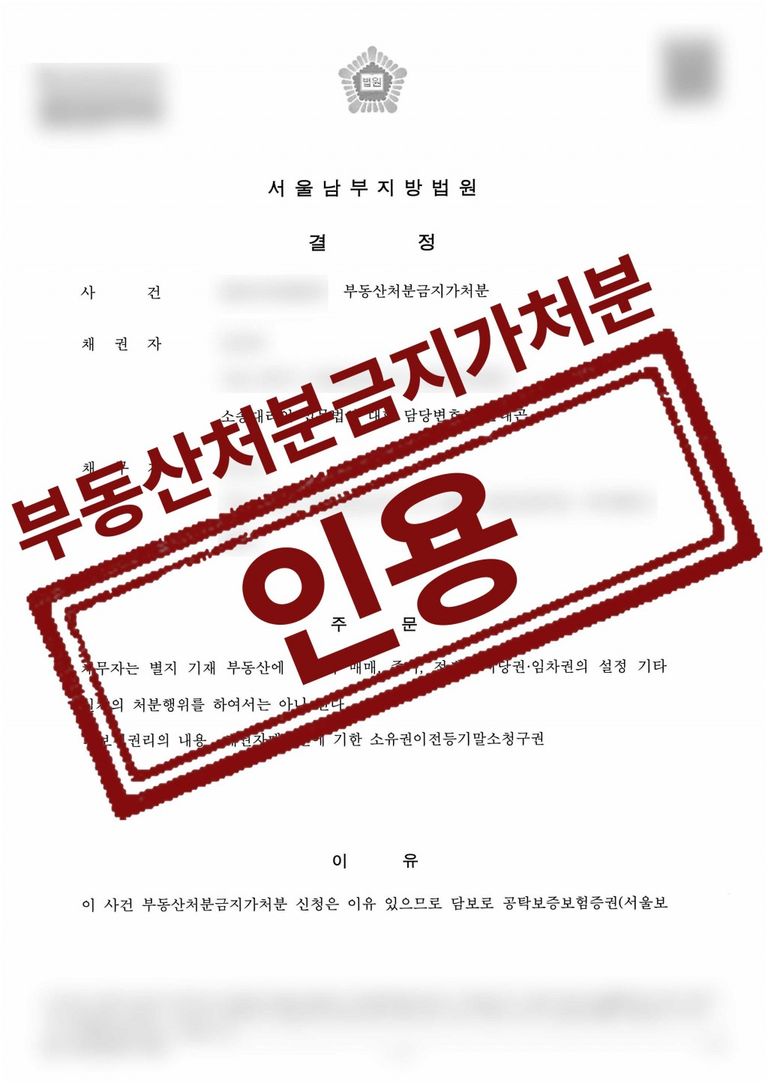 법무법인 대환은 부동산 소송을 진행하기에 앞서 부동산처분금지가처분을 진행하는 것으로 하여 구체적인 사실관계를 통해 서면을 제출하였고 부동산처분금지가처분 신청이 전부 인용되었습니다.