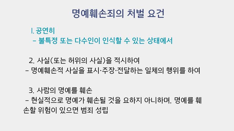 명예훼손죄의 처벌 요건을 정리하면 아래와 같습니다.