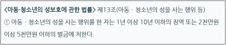 아동·청소년에 대한 성범죄의 경우, 아동·청소년은 사회적·문화적 제약 등으로 아직 온전한 기 결정권을 행사하기 어려울 뿐만 아니라, 인지적·심리적·관계적 자원의 부족으로 타인의 성적 침해 또는 착취행위로부터 자신을 방어하기 어려운 처지에 있음을 고려하여 성인 대상의 성범죄보다 더 엄격하게 처벌하는 규정을 두고 있는 것입니다.