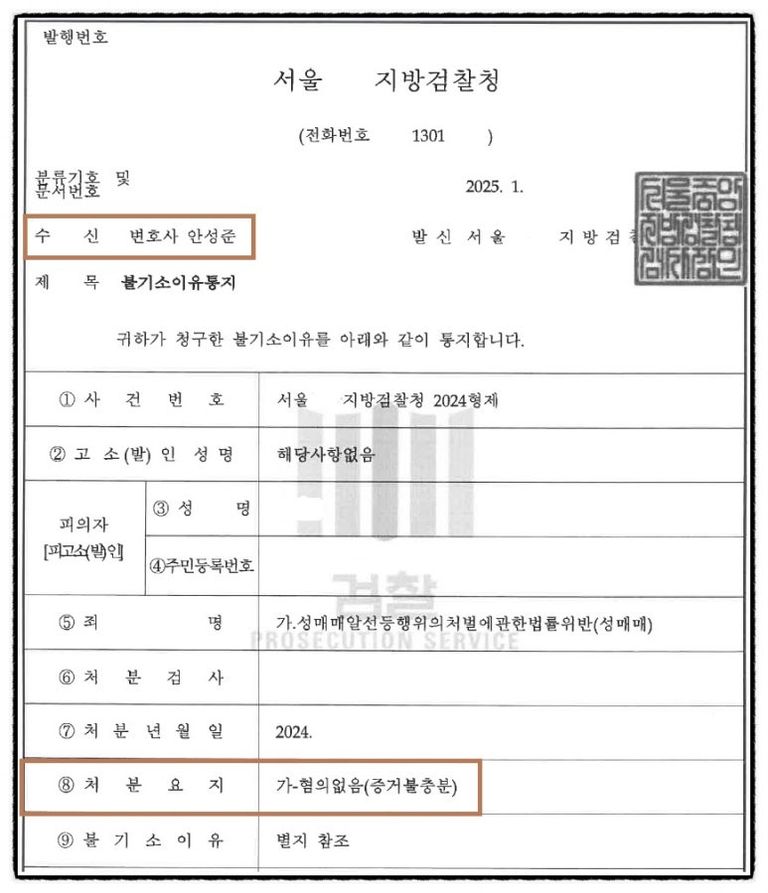 [최종 결과] - 불기소 결정(혐의없음)