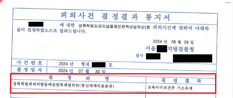 이러한 저 이재성 변호사의 노력에 따라, 의뢰인께서는 '교육조건부 기소유예' 처분으로 전과가 남지 않고 사건을 마무리할 수 있었습니다.