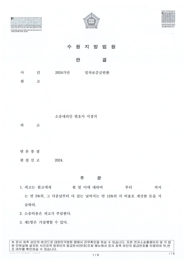 ✅ 임대차보증금 반환 소송 → 승소 후 판결 확정