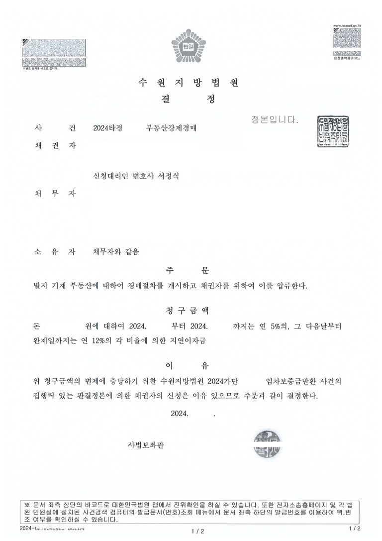 이번에서는 임차인이 보증금을 돌려받지 못해 소송을 제기했고, 임대차보증금 반환 청구 소송에서 승소하여 판결을 받은 뒤 이후 신속하게 경매 절차까지 진행하여 원스톱으로 해결한 사례를 소개하겠습니다.