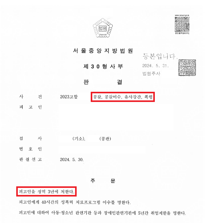 이러한 저의 조력을 바탕으로 B씨는 유죄판결을 선고받았을 뿐만 아니라 징역 3년을 선고받고 법정구속되었습니다.