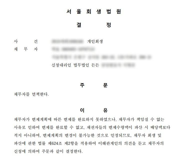 의뢰인은 개인회생 특별면책 신청 후 약 4개월 만에 면책결정을 받았습니다.