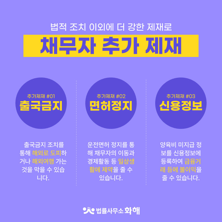 앞서 설명한 법적 조치 외에도, 양육비를 계속 주지 않을 경우에는 더 강한 제재를 할 수 있는데요. 먼저, 양육비 채무 불이행자의 명단 공개가 가능합니다. 이렇게 하면 사회적으로 압박을 받아 양육비를 주게 될 가능성이 높아집니다. 또한, 출국금지 조치를 통해 해외로 도피하는 것을 막을 수도 있습니다.