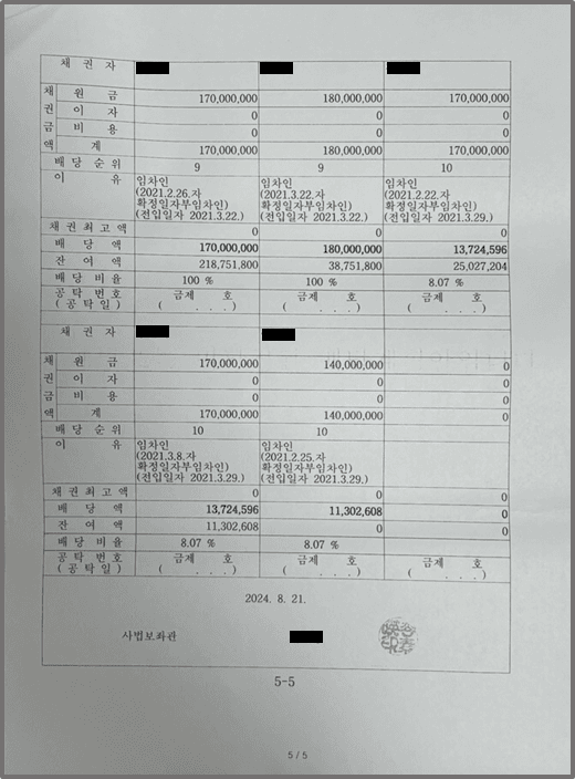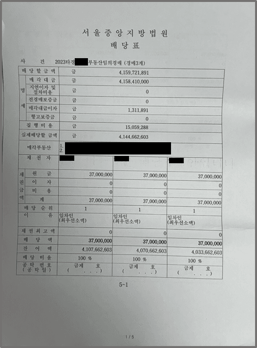 본 사건은 정말 다행히도 의뢰인이 경매절차에서 전액을 배당받을 수 있는 마지막 순위자에 해당이 되었습니다.