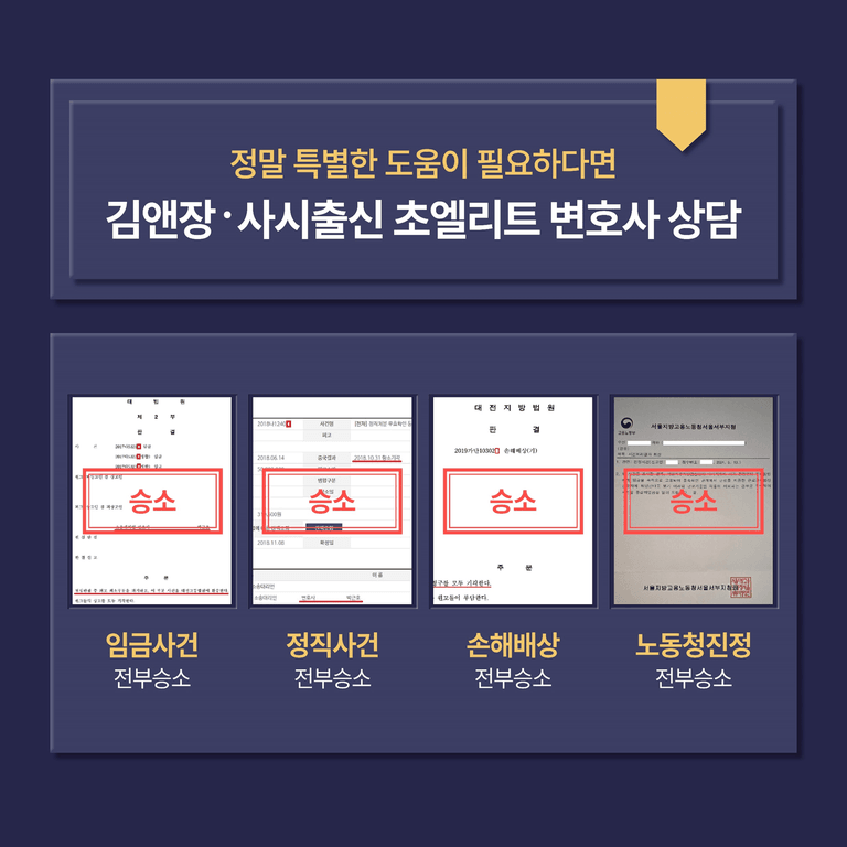 ※ 박근호 변호사는 사법시험·김앤장 출신 변호사로서, 어려운 상황에 처한 의뢰인분들을 조력하며 성공적인 결과를 얻어 왔는바, 유사 사건으로 고민이 많으시다면 곧바로 박근호 변호사와 상담을 진행해 보시기 바랍니다.