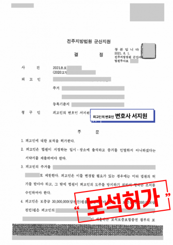 법원은 서지원 변호사의 주장을 받아들여 보석 허가 결정을 내렸고, A는 석방되었습니다.