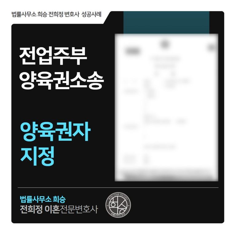 따라서, 지금부터 “양육권소송, 전업주부 양육권자 지정받은 성공사례”를 소개해 드릴 테니, 도움이 필요하시다면, 성공사례와 감사후기로 실력이 보장된 “이혼 전문 전희정 변호사”에게 연락하여 법적인 조력을 받으시길 바랍니다.