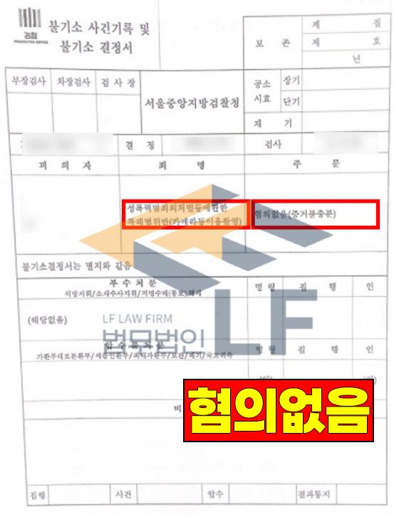 촬영결과물을 확인한 뒤 카메라등이용촬영 혐의의 성립요건에 부합하는지에 대하여 변호인 의견서를 작성하여 제출하며 의뢰인의 혐의없음을 주장하였고 의뢰인은 무혐의 처분의 결과를 받을 수 있었습니다.