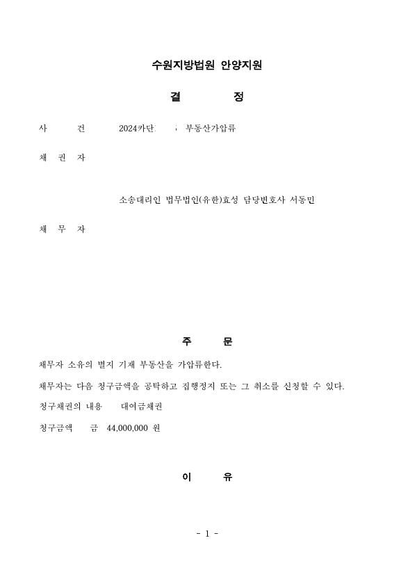 저는 즉각 대여금청구소송을 제기하면서 동시에 피고 소유 부동산에 가압류를 신청하였고 법원은 보증보험증권을 담보로 요구하여 이를 이행 후 인용 결정을 받았으며 피고는 저희에게 연락하여 대여금을 변제해서 의뢰인은 대여금을 변제받았습니다.