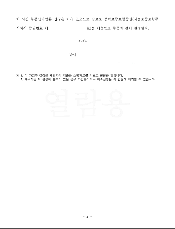 특히 담보제공을 현금이 아니라 보증보험증권으로 하는 경우 가압류 신청자의 부담도 덜하게 됩니다.