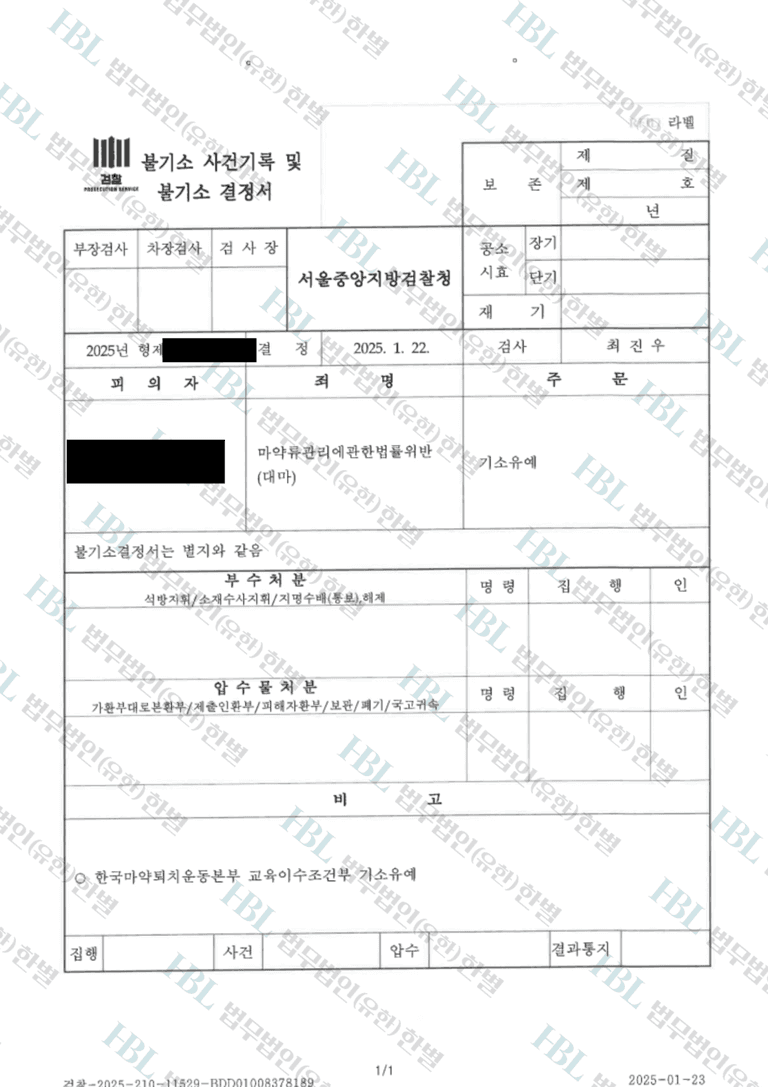 담당 검사와의 면담을 통해, 본 사안을 구매 미수 혐의로 정리하고 진지한 반성, 재범방지를 위한 노력에 대한 의지 등을 두루 인정받아 [기소유예처분]을 받고 본 사안을 불기소로 마무리할 수 있게 되었습니다.