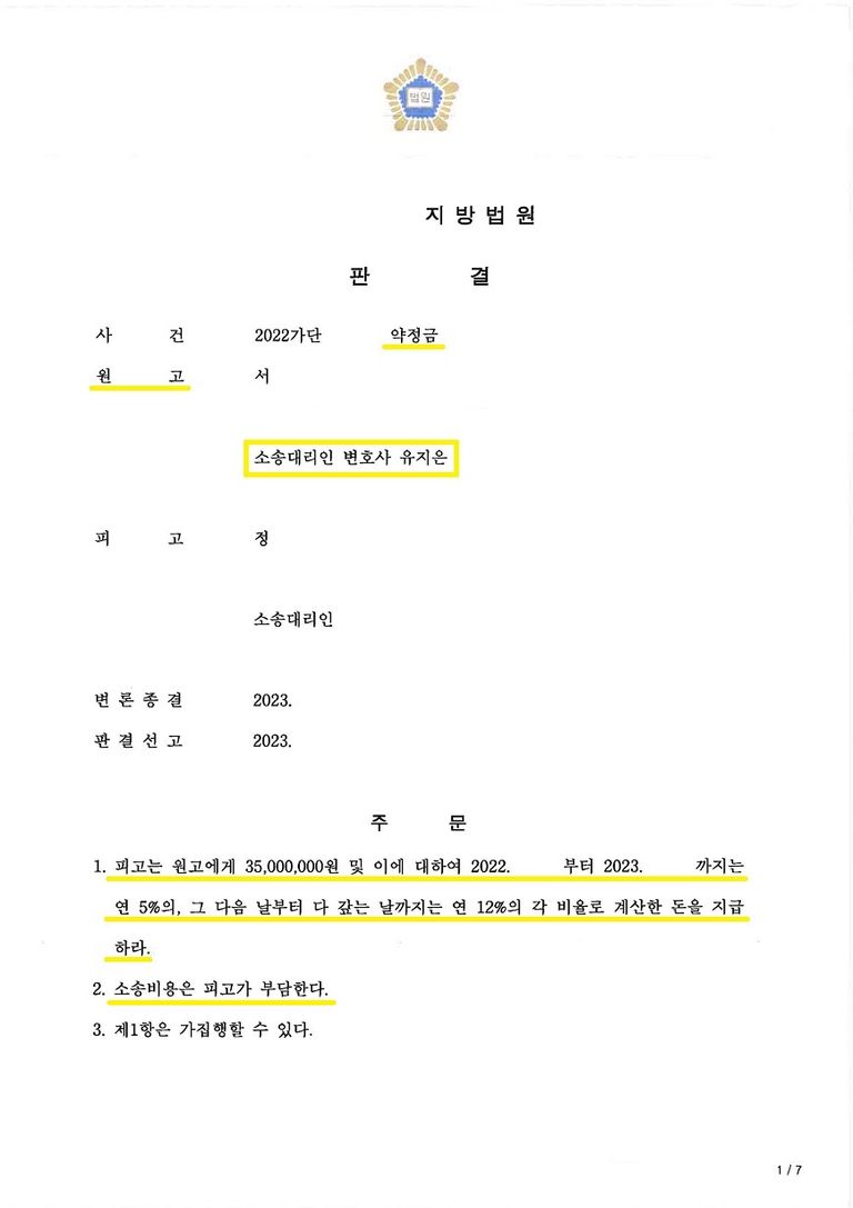 결국 의뢰인이 간절히 원하는 대로 시아버지로부터 대출금 3,500만 원 전액을 지급 받을 수 있었고, 소송비용까지도 상대방에게 부담시키며 전부 승소한 사안입니다.