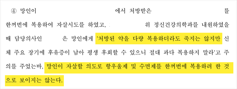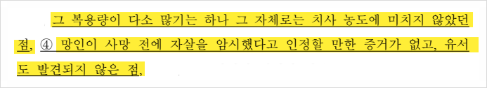 부검 결과 망인의 혈중 약물 농도가 높긴 했지만,