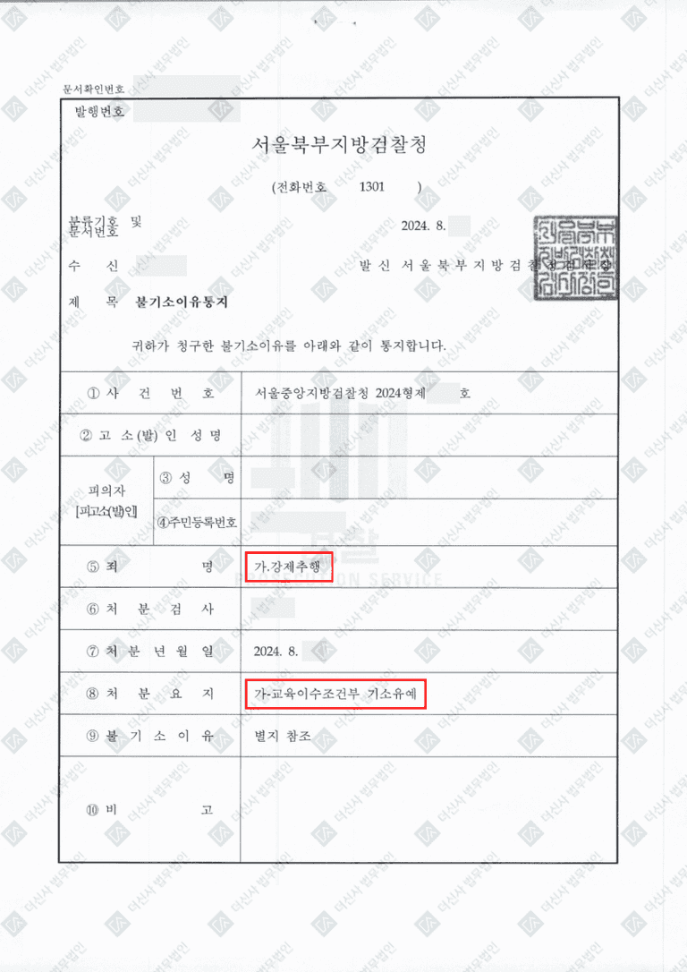 결과 | 기소유예(서울북부지방검찰청)