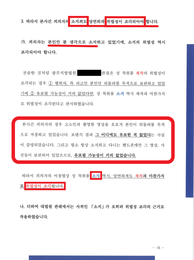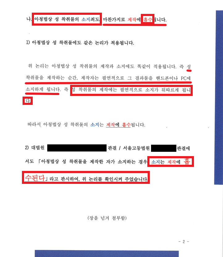 그래서 '소지'가 '제작'에 흡수되어 별도로 판단할 필요가 없다는 점을 두번 째로 입증해내야 합니다.