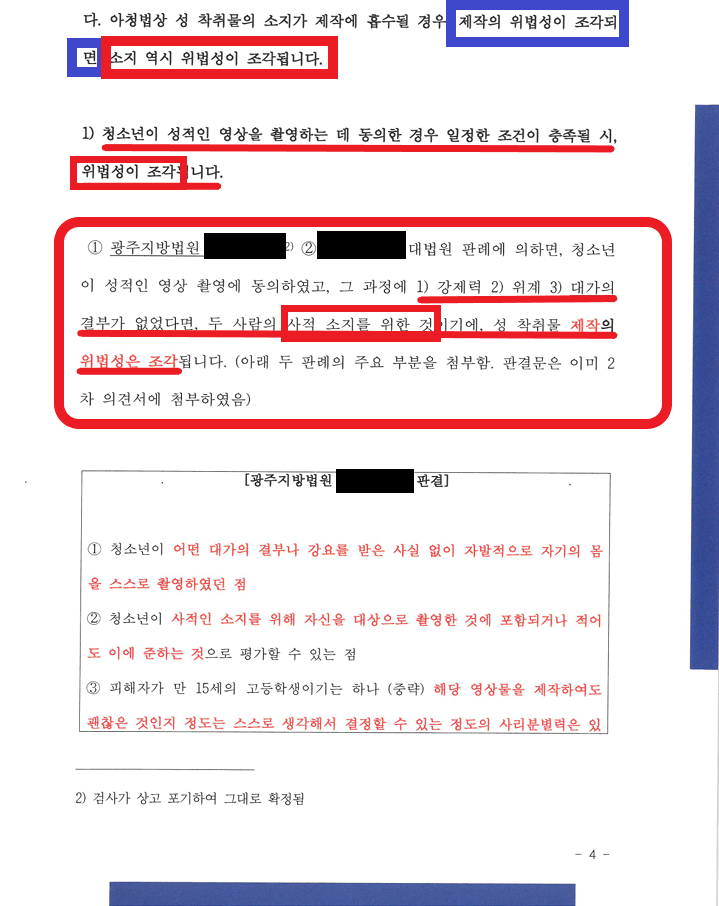 가. 변호인의견서 제출 - 미성년자와의 성관계 영상, 자위 영상을 수십개 보관하여도, 변호사가 의견서만 잘 쓰면 불기소를 받을 수 있음!