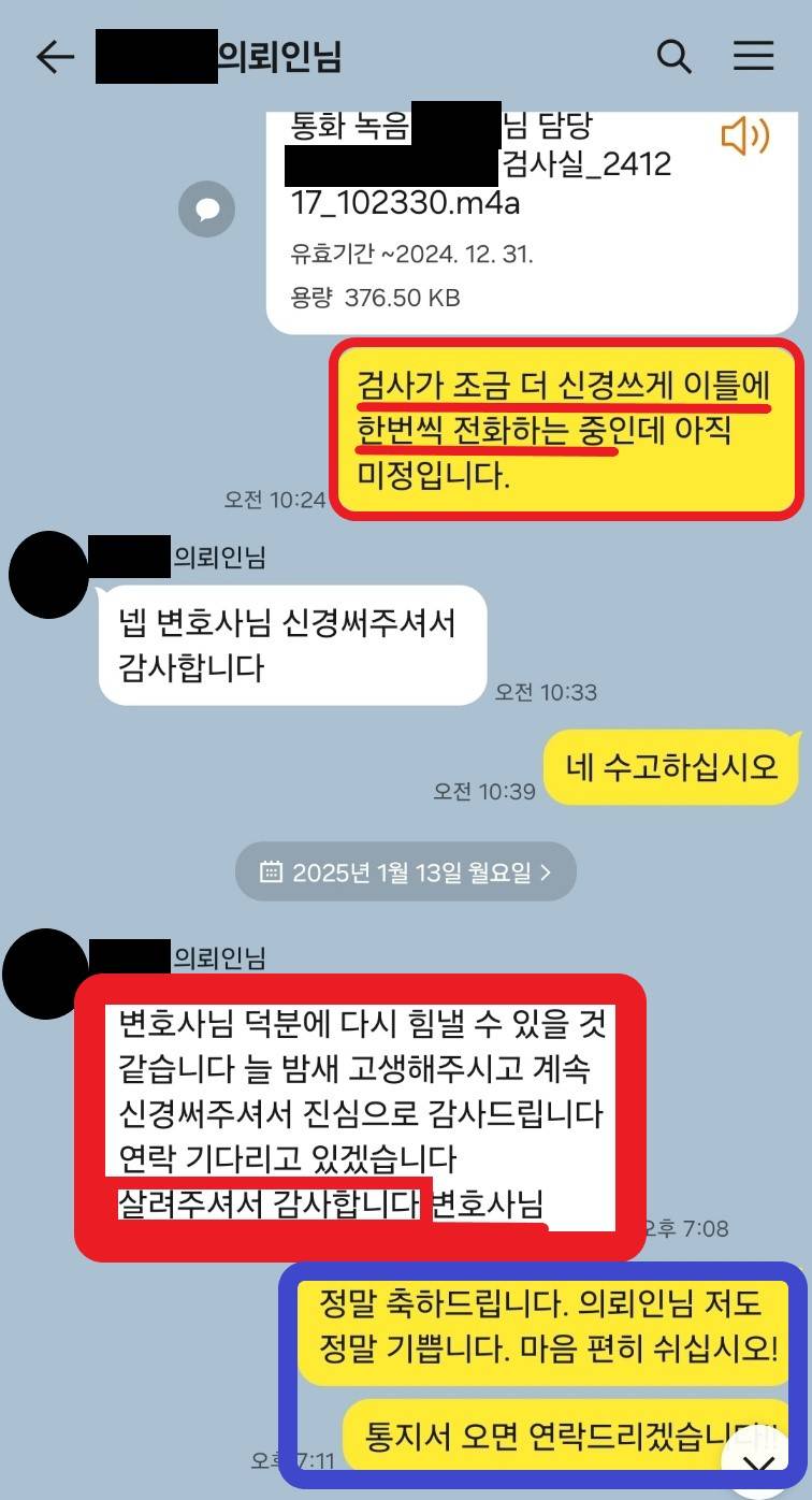 (불기소 처분을 알게 된 날 A와의 대화)