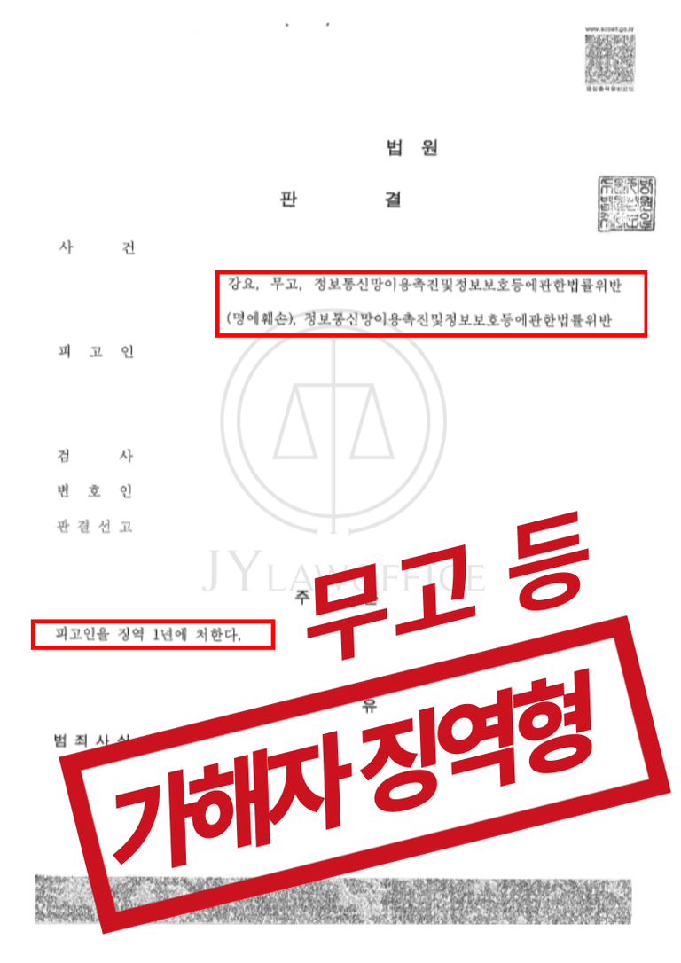 이와 같은 변호사의 조력에 따라, 의뢰인은 강간, 준강간 혐의에 대하여는 혐의 없음의 불기소 처분을 받고 성폭행 무고를 밝힐 수 있었으며, 고의로 의뢰인을 무고하고 의뢰인의 명예를 훼손한 가해자에게는 징역형의 판결을 받게 하며 사건을 무사히 종결시킬 수 있었습니다.