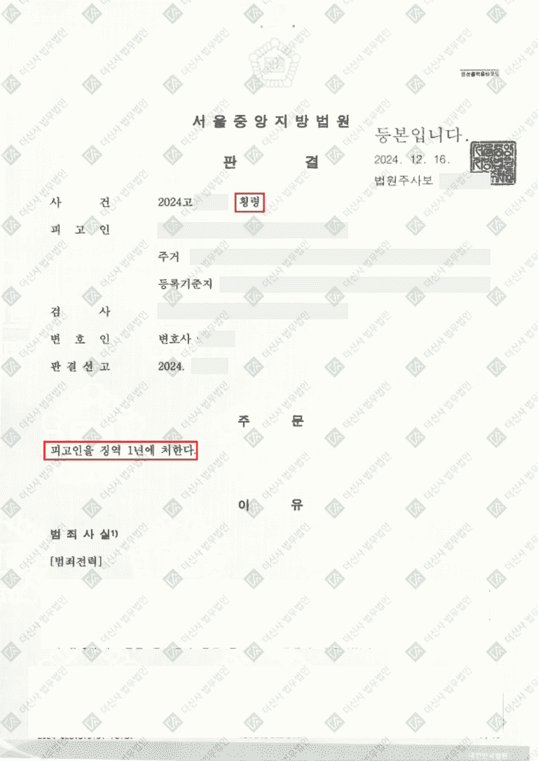 결과 | 징역 1년
