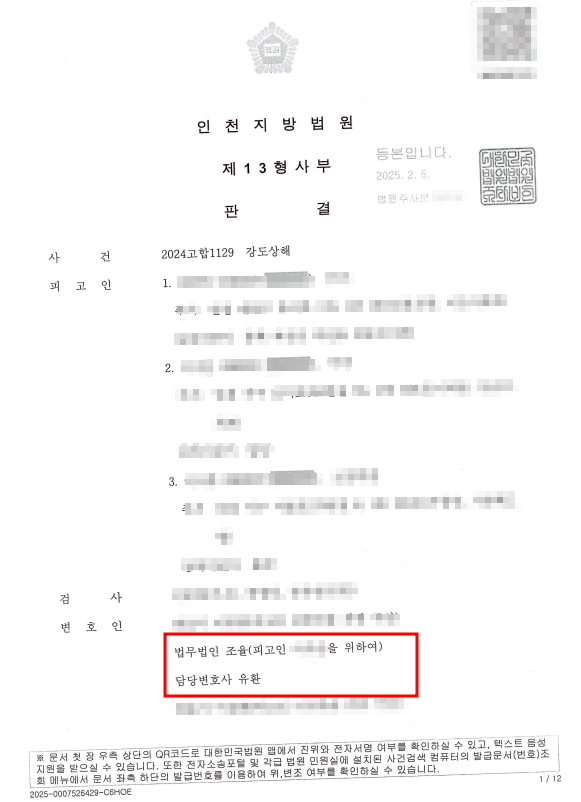 강도상해는 법정형 하한이 7년이상인 중대 범죄로서 모든 공소사실을 인정하고 선처를 구하는 변론을 준비하였습니다. 이에 법무법인 조율은 피고인이 미성년자라는 점뿐만 아니라 피고인이 어려서부터 정신적, 심리적 장애가 있어 정기적 치료와 관리가 필요하다는 점을 강조하였고, 이를 위해 피고인의 병원 진료 내역, 친인척의 탄원서, 학교 선생님 주변 지인들의 탄원서를 적극 제출하여 법원에 선처를 호소하였습니다. 또한, 사건 내용에 따르더라도, 공모의 주범자는 피고인이 아닌 성년인자인 점을 면밀하게 주장함으로써 피고인의 범죄 가담 정도를 최소화하였고, 피해자와 합의를 적극적으로 임하여 양형조사위원에게 좋은 평가를 받을 수 있도록 노력하였습니다.