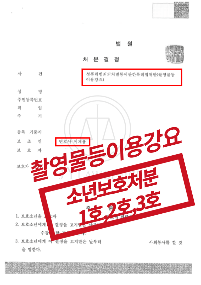 [성공사례] 촬영물등이용강요 - 보호자 감호 위탁 등