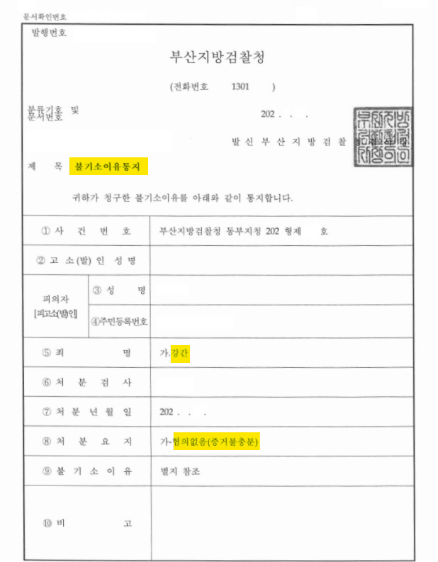 결과 : 혐의없음(증거불충분) 불기소