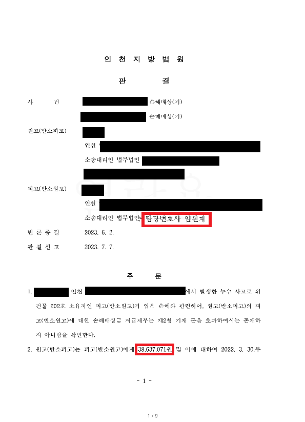 이 사건은 일상적인 누수 문제에서도 적절한 법적 대응의 중요성을 보여줍니다. 특히 반복적 피해가 발생하고 과실 책임을 명확히 해야 하는 경우, 법률 전문가의 조언이 필수적임을 알려줍니다.
