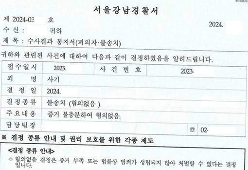 ” 불송치결정(혐의없음)!”