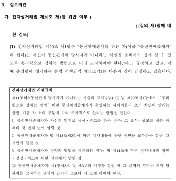 1. 사건의 개요 - 전자상거래법 위반 공정거래위원회 대응 법률자문