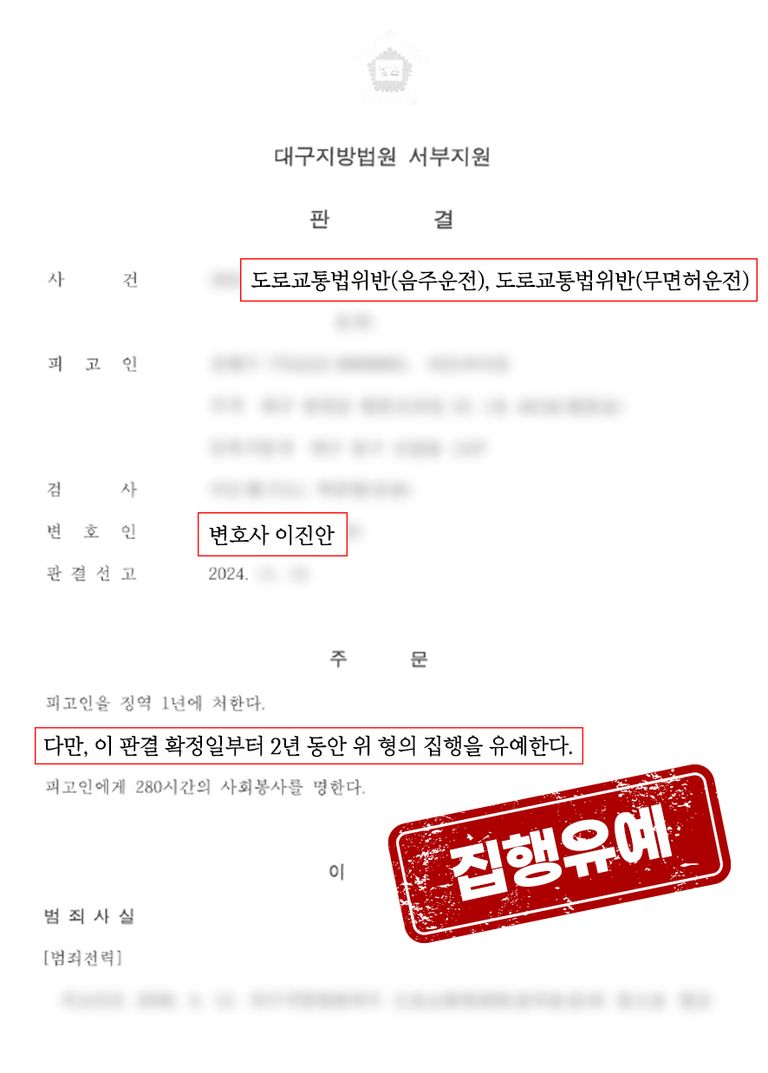 ![무면허음주운전 집행유예,직전전과 집유인데 다시선처받은[성공사례]](/_next/image?url=https%3A%2F%2Fd2ai3ajp99ywjy.cloudfront.net%2Fuploads%2Ftitleimage%2Foriginal%2F5be95c5c1ed47ead3da67fb4-original.jpg&w=3840&q=75)
