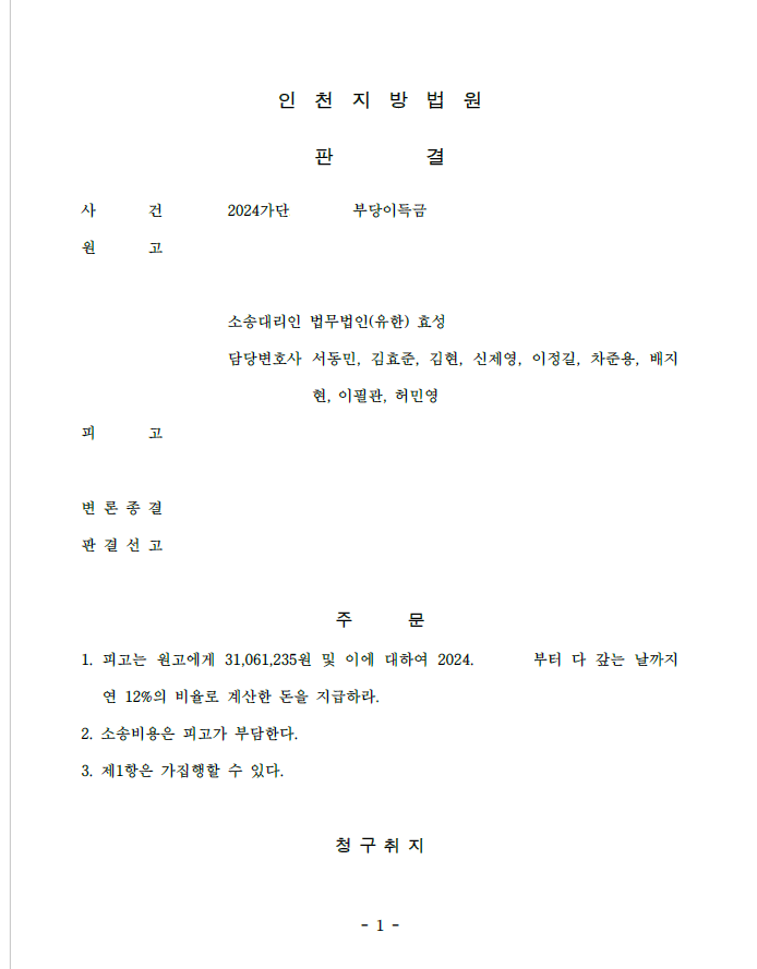 저는 즉각 입금 받은 자를 피고로 하여 민사소송 부당이득반환청구소송을 제기하였고 법원은 원고 승소 판결을 선고하여 의뢰인은 피해액을 반환받았습니다.