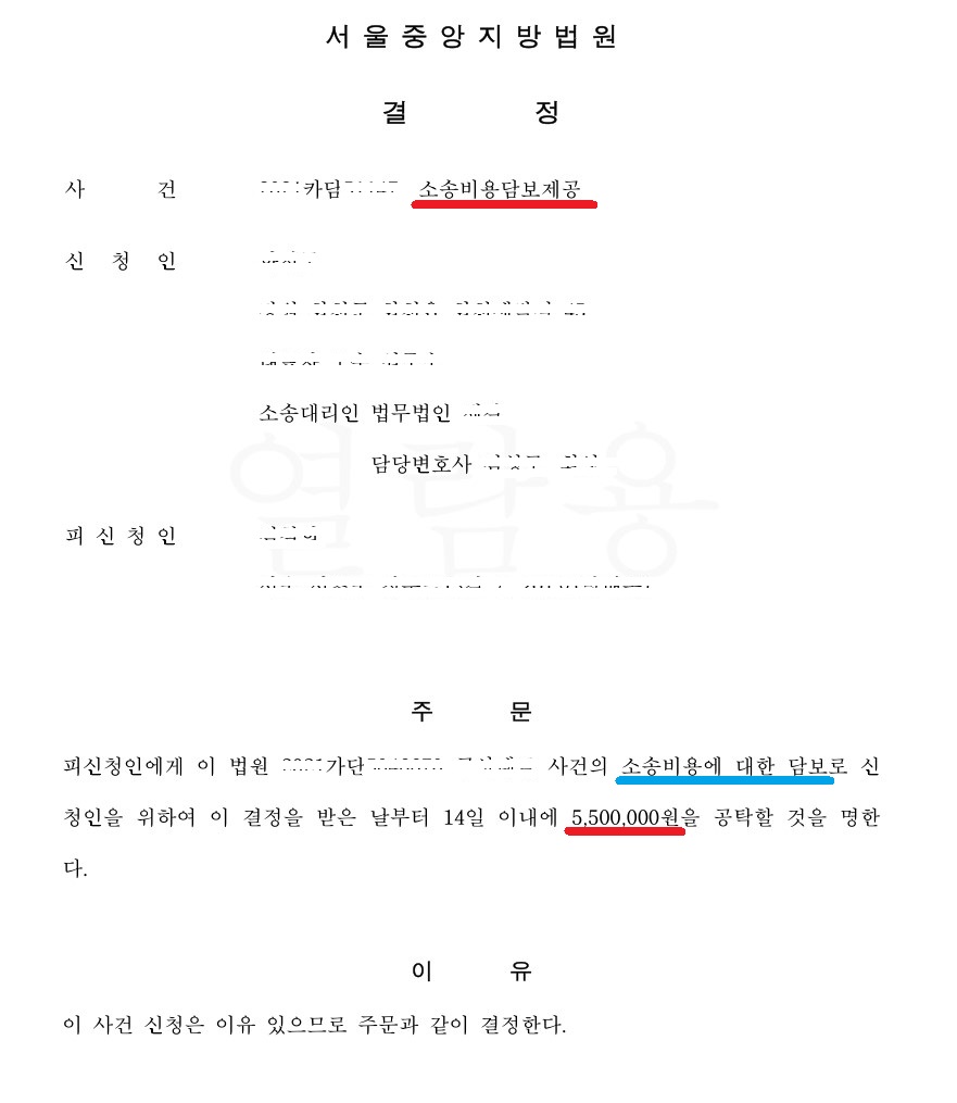 이러한 절차를 활용하면, 부당한 소송으로 인해 발생할 수 있는 경제적 부담을 줄이는 데 도움을 받을 수 있으며, 상대방의 무리한 소송에 대해 일정 수준의 제동을 걸 수 있는 효과가 있습니다. 따라서 명확한 사안에 관하여 반복적으로 소송을 당하거나 원고가 외국법인인 경우에 피고는 자신의 권리를 보호하기 위하여 소송비용 담보제공 신청을 고려해 보시기 바랍니다.