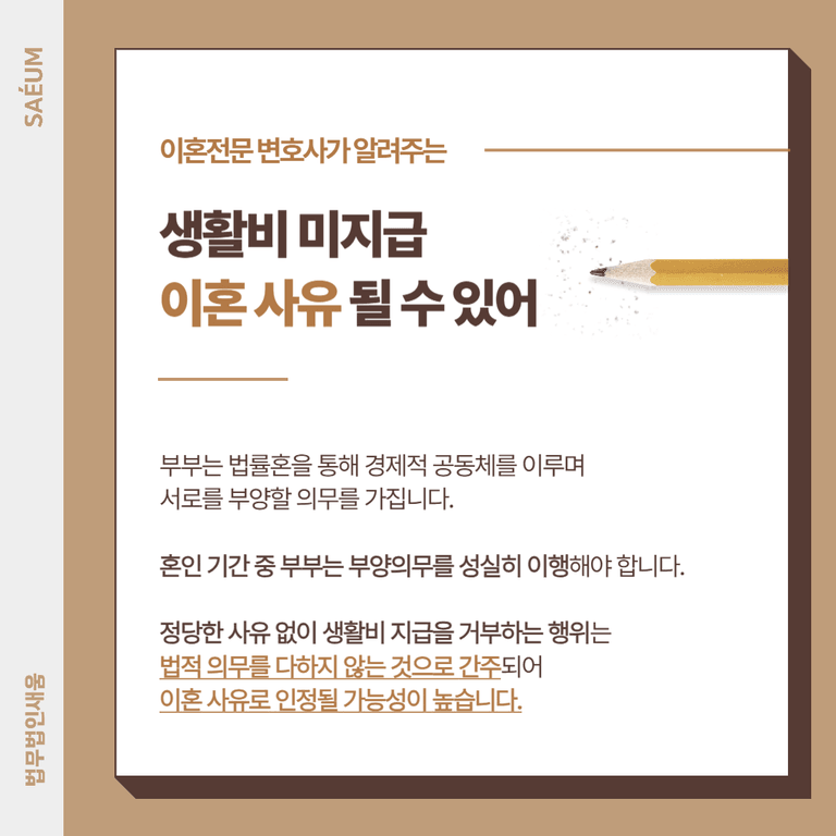 결론부터 말씀드리면, 생활비 미지급은 이혼 사유가 될 수 있습니다.