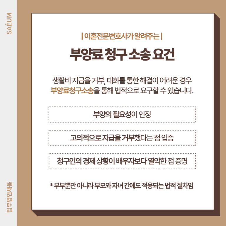 부양료 청구 소송은 명확한 법적 근거와 객관적인 증거가 필수적이므로, 사전에 관련 소송 경험이 풍부한 이혼전문변호사의 조력을 받는 것이 중요합니다.