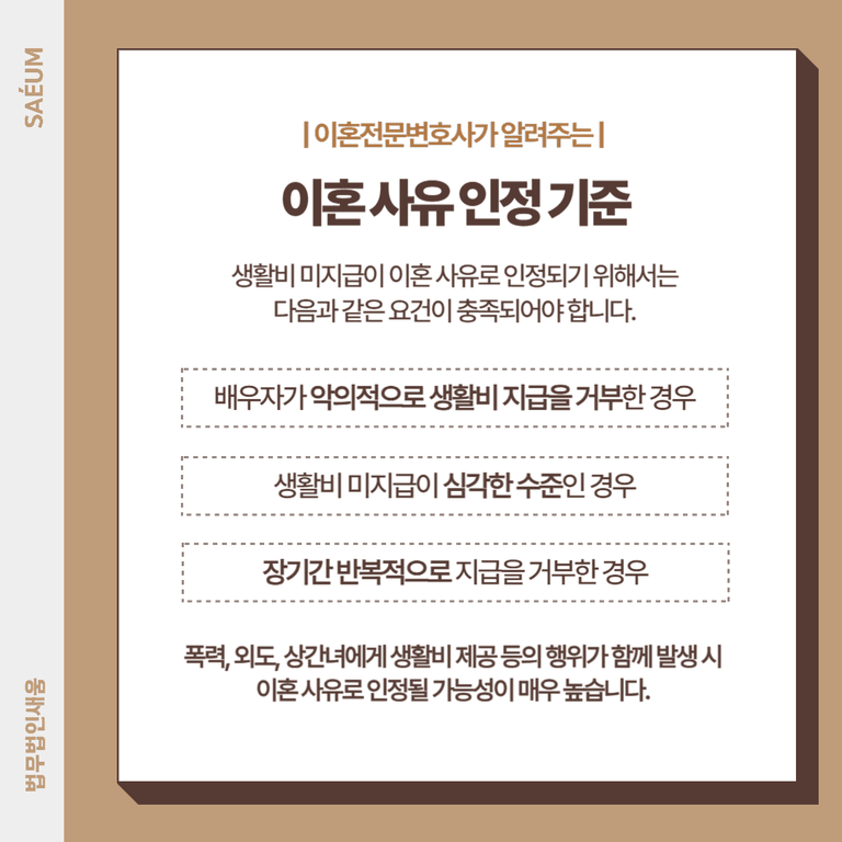 생활비 미지급이 이혼 사유로 인정되는 기준은?