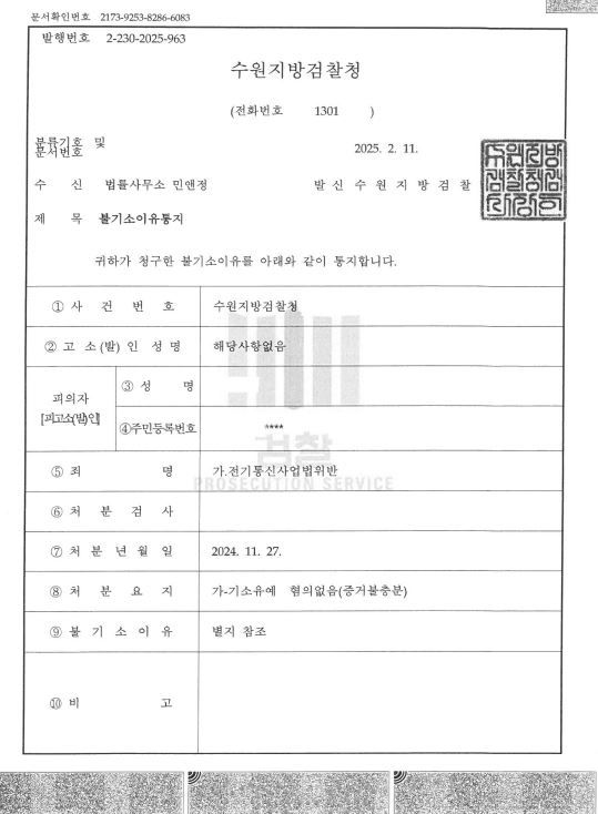 그 결과 담당 검사는 피고인에게 부인하는 해당 혐의에 대해서는 증거불충분 무혐의 처분, 인정하는 부분에 대해서는 기소유예 처분이라는 선처를 내렸습니다.
