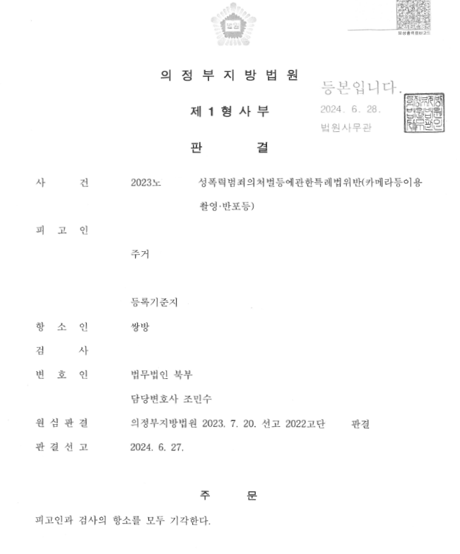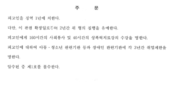 의정부지방법원은 변호인의 의견을 수용하여 집행유예 판결을 선고하였고, 이후 검찰이 징역형을 선고하여야 한다면서 양형부당으로 항소하였으나, 변호인의 적극적인 변론으로 검찰의 항소까지 기각시킬 수 있었음.