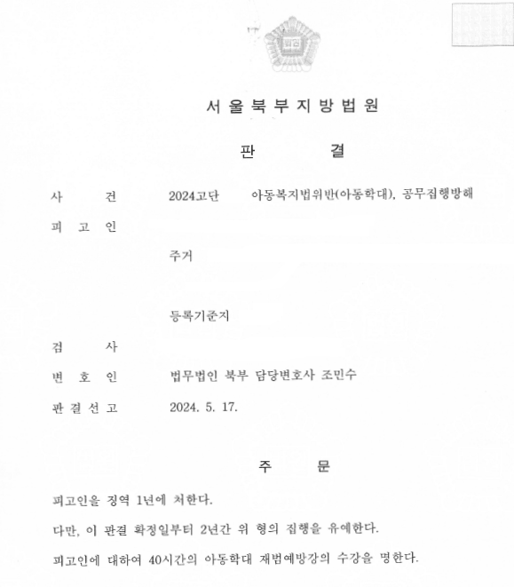서울북부지방법원은 변호인의 의견을 수용하여 실형이 아닌 집행유예를 선고하였음.