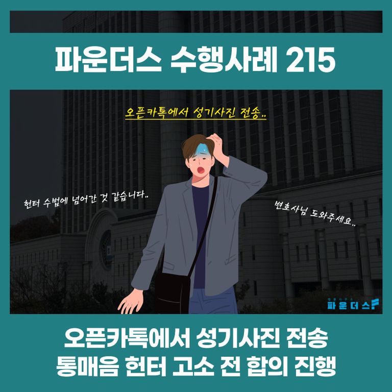 이로써 의뢰인은 통매음 헌터의 유도에 넘어가 성기사진을 전송한 사건에서 고소 전 합의 진행으로 마무리 지을 수 있었습니다.