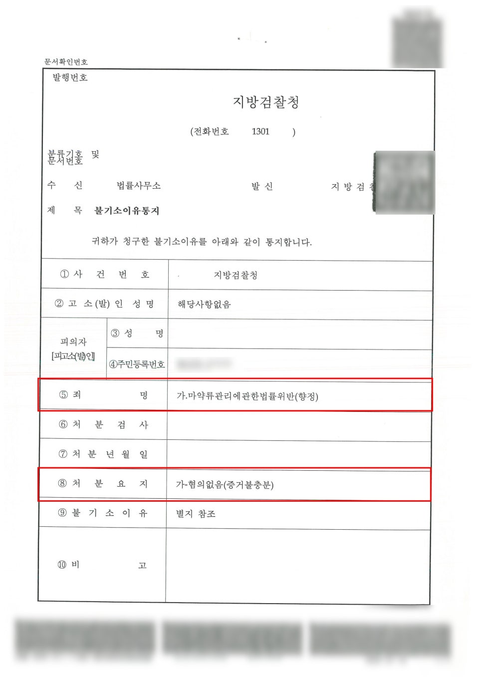 '혐의없음' 불기소이유 통지서